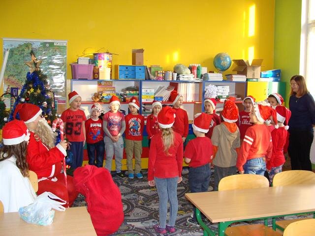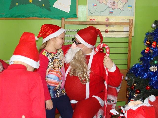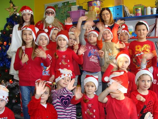 i zwinna. Wiele razy ukończyła daną konkurencję jako pierwsza. Wszystkie dzieci bawiły się na wesołe, te kibicujące i dopingujące również. Następnie udaliśmy się wszyscy do klasy. Dzieci już nie mogły się doczekać oczekiwanego gościa – Mikołaja. Zaśpiewały Mikołajowi piosenkę, powiedziały wiersze, a nawet coś miłego. Wszystkie dzieci otrzymały paczkę od Mikołaja i były bardzo szczęśliwe, co widać na załączonych zdjęciach.