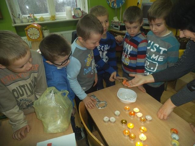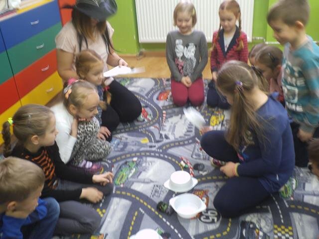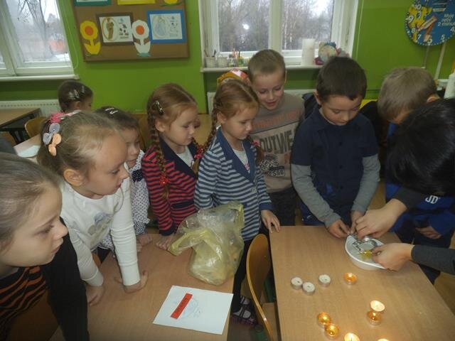 Tego dnia w naszej klasie było magicznie, gdyż odbywały się wróżby. Wszystkie dzieci lały wosk i brały udział w różnych zabawach. Serdecznie dziękuję za pomoc mamie Moniki i Michała oraz mamie Julii i Zuzi.