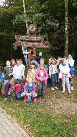 Uczniowie klasy III c uczestniczyli w lekcji przyrody na terenie lasu należącego do Nadleśnictwa Susz. Dzieci mogły swobodnie obserwować drzewa i krzewy w jesiennej szacie. Rozpoznawały gatunki napotkanych drzew i krzewów, ich liście i owoce.