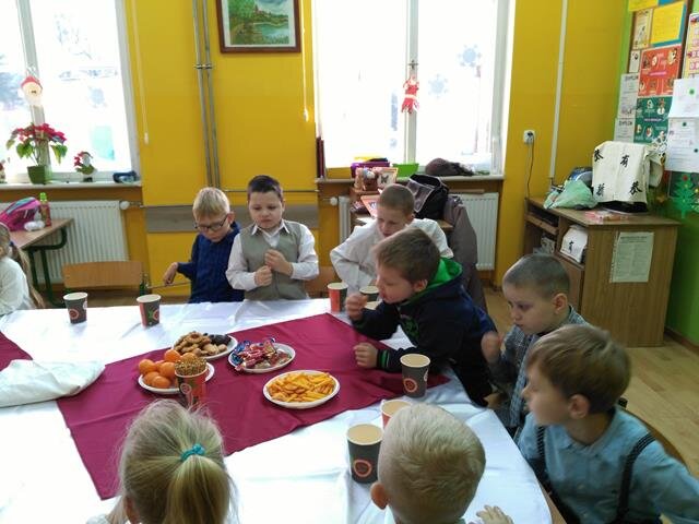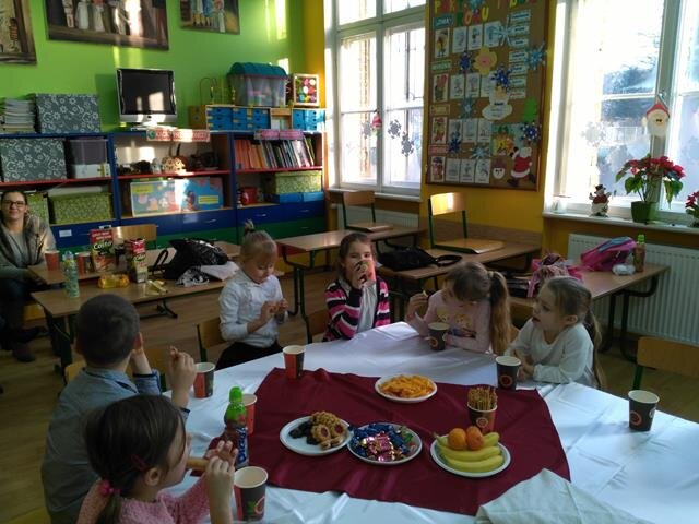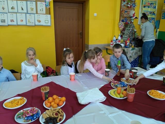 Tuż przed Świętami Bożego Narodzenia dzieci z klasy Ic po raz pierwszy przeżywały klasową wigilię. Odświętnie ubrani, w uroczystych nastrojach przy dźwiękach polskich kolęd dzieci składały sobie życzenia łamiąc się opłatkiem. Następnie zasiadły do udekorowanego stołu, na którym znajdowały się słodkości przygotowane przez rodziców. Po wspólnym ucztowaniu na dzieci czekały prezenty od Świętego Mikołaja. Wśród wszystkich panowała powaga i świąteczny nastrój.