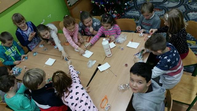 Dzieci z klasy II d (wych. K. Hiszpańska) 14.12.2016 r.w ramach konkursu organizowanym przez FUNDACJĘ KORPORACYJNĄ ROZWOJU SPOŁECZEŃSTWA EKOLOGICZNEGO EKO CYKL. Miały za zadanie udekorować ozdobami wykonanymi z odpadów najpiękniejsze drzewko świąteczne. Celem konkursu było rozbudzanie kreatywności uczestników konkursu, umożliwienie prezentacji uzdolnień plastycznych, rozwijanie umiejętności pracy zespołowej, kształtowanie postaw proekologicznych promujących ideę segregacji odpadów. Podczas wykonywania dekoracji dzieci miały fantastyczna zabawę.