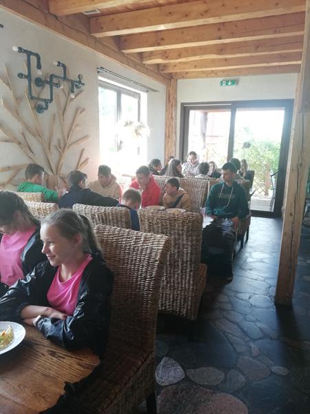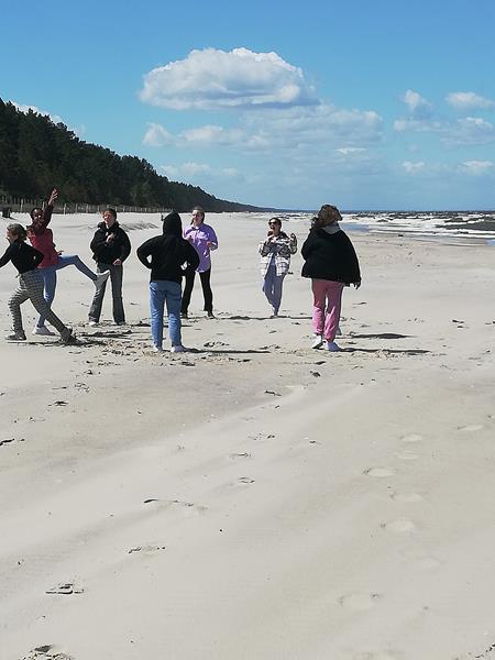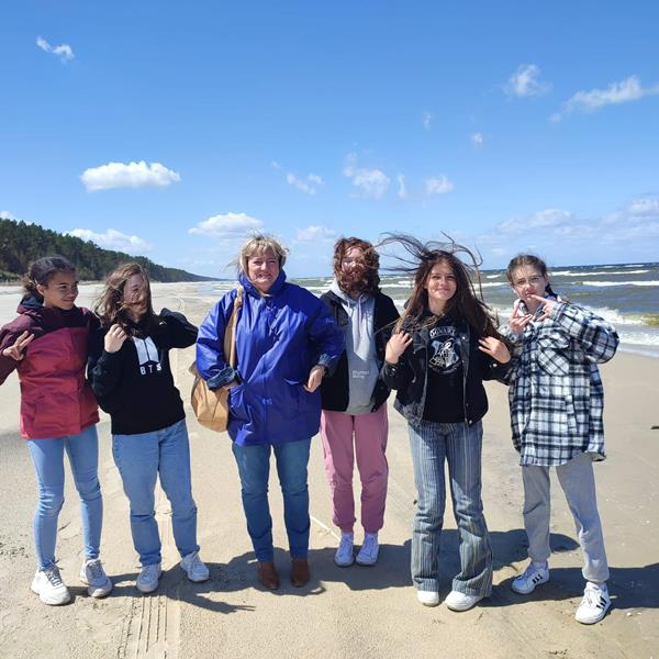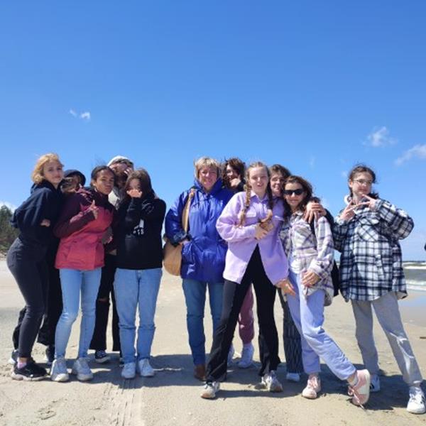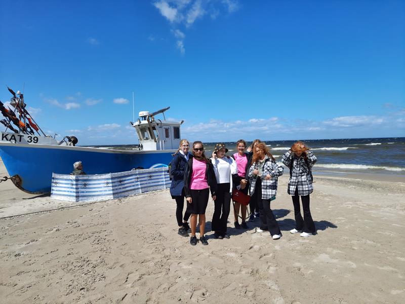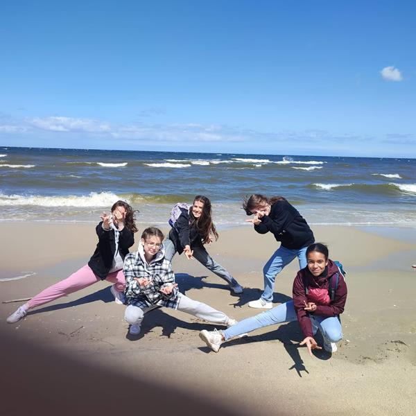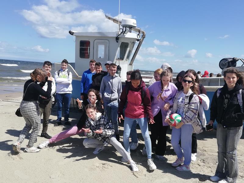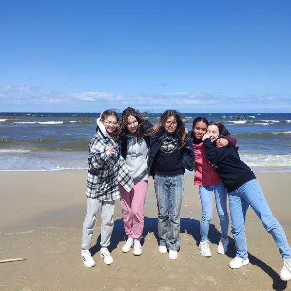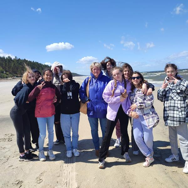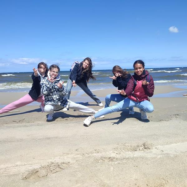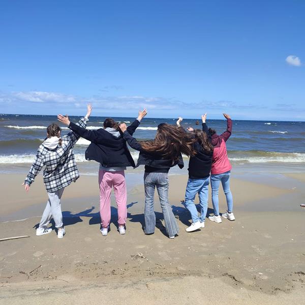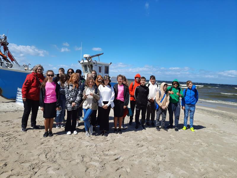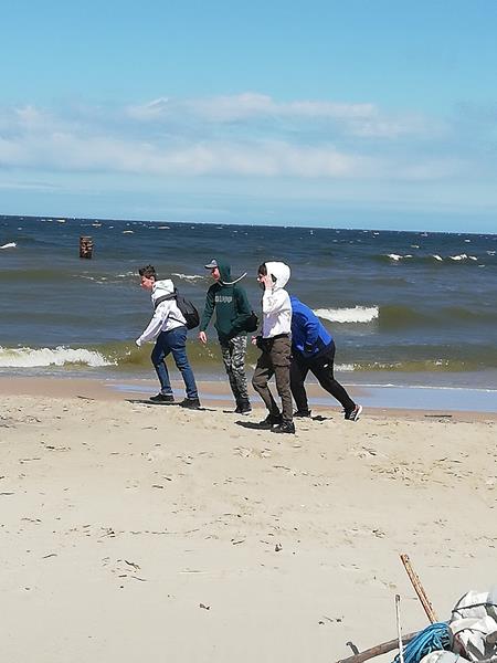 Sami uczniowie nazwali wizytę w obozie „żywą lekcją historii”. Następnie udaliśmy się na budowę przekopu Mierzei Wiślanej. Kolejnym miejscem była morska plaża, która przywitała nas wiosennym wiatrem. Na zakończenie wycieczki czekał na nas pyszny obiad i lody w restauracji „Sielska Zagroda”.