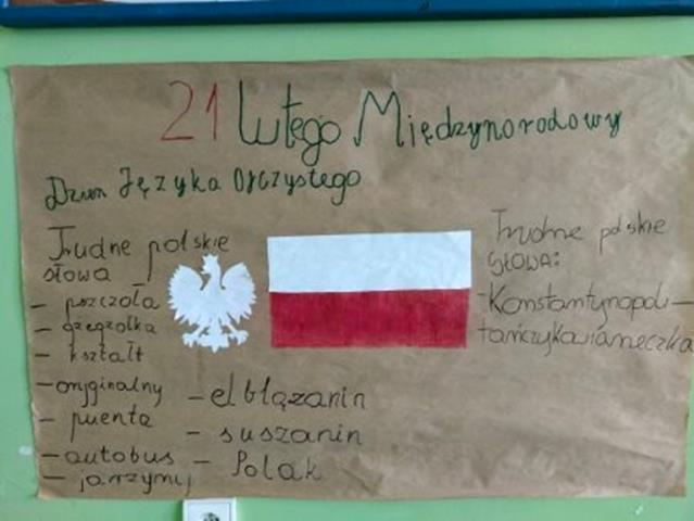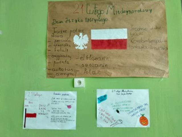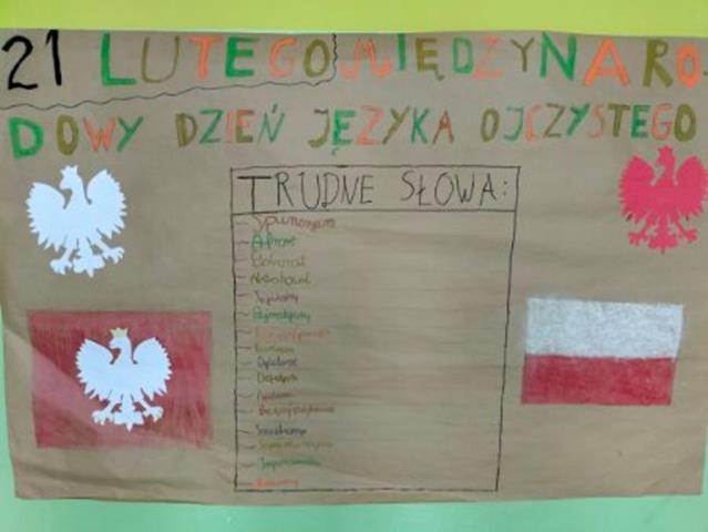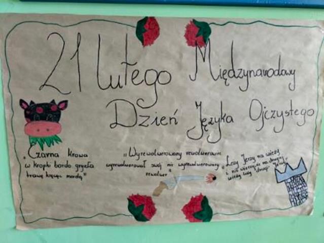 Od 21 lutego przez kilka kolejnych dni uczniowie i nauczyciele naszej szkoły tradycyjnie już włączyli się w obchody tego święta. Na lekcjach języka polskiego prezentowaliśmy ciekawostki związane z naszym językiem, rozwijaliśmy słownictwo, ćwiczyliśmy poprawność ortograficzną, braliśmy udział w grach i zabawach związanych z szeroko rozumianą poprawnością językową. Uczniowie poznawali mity i fakty na temat języka ojczystego, zmagali się w konkursach łamańców językowych i poprawnej polszczyzny. Podczas przerw uczestniczyli w tzw. bieganym dyktandzie, które wywoływało wiele emocji i wymagało grupowej współpracy od jego uczestników. Świetnie poradzili sobie z tym zadaniem uczniowie kl.7b i 8d. Na korytarzach szkolnych pojawiły się plakaty wykonane przez uczniów kl. 6d i 5a oraz gazetki tematyczne informujące o historii i znaczeniu tego szczególnego dnia.