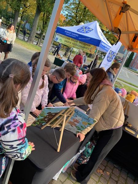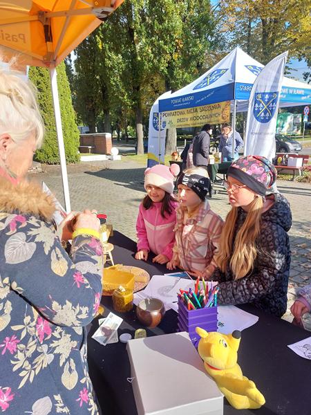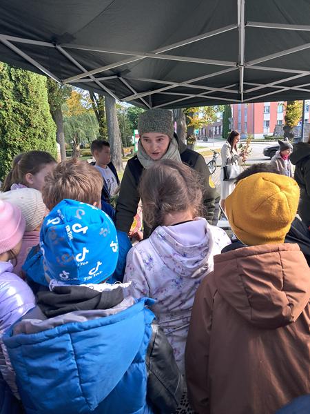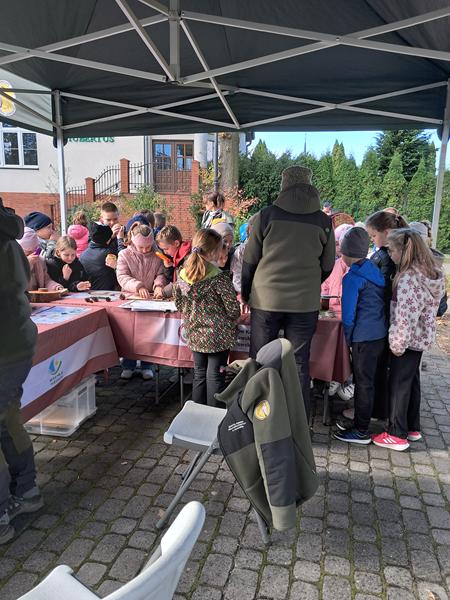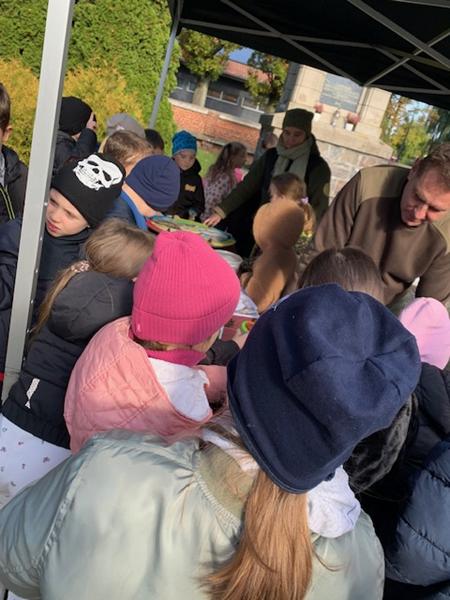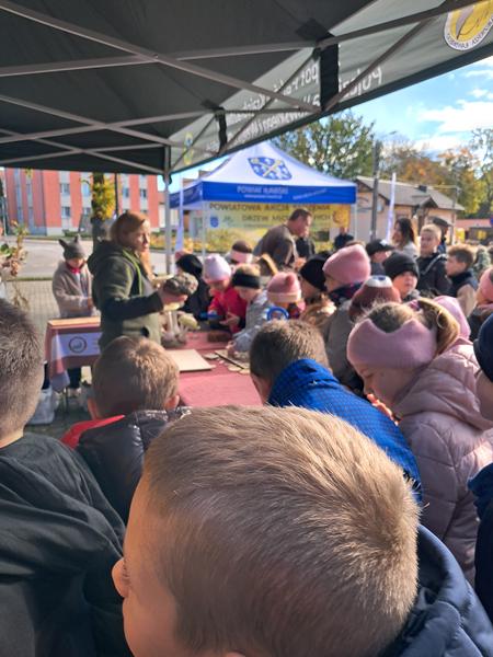 Uczniowie naszej szkoły nie pozostali obojętni na tak pouczającą lekcję. Poszliśmy do miejsca akcji. Tam dzieci wzięły udział w pogadankach na temat drzew, grzybów oraz pszczół. Miały okazję sprawdzić swoją wiedzę w quizach przyrodniczych. Na koniec otrzymaliśmy krzewy, które posadzimy na terenie szkoły.