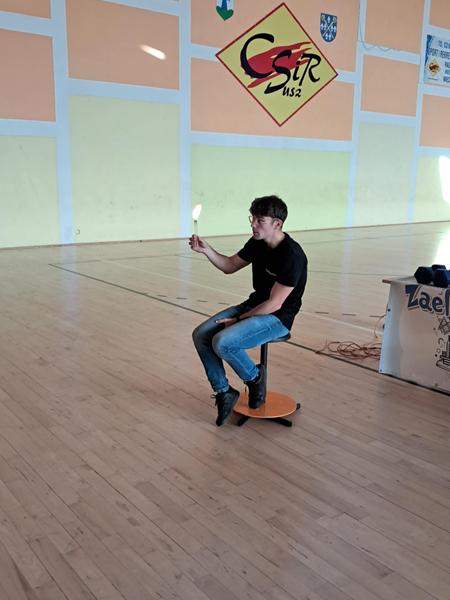 6 listopada 2025 do naszej szkoły zawitał przedstawiciel grupy „Zaelektryzowani”, który zachwycił wszystkich pokazem naukowym z zakresu chemii i fizyki. Podczas pokazu można było zobaczyć m.in. jak napełnić balon, dmuchając z daleka? - Powietrze porywa wtedy powietrze z otoczenia, dzięki czemu balon rośnie błyskawicznie.