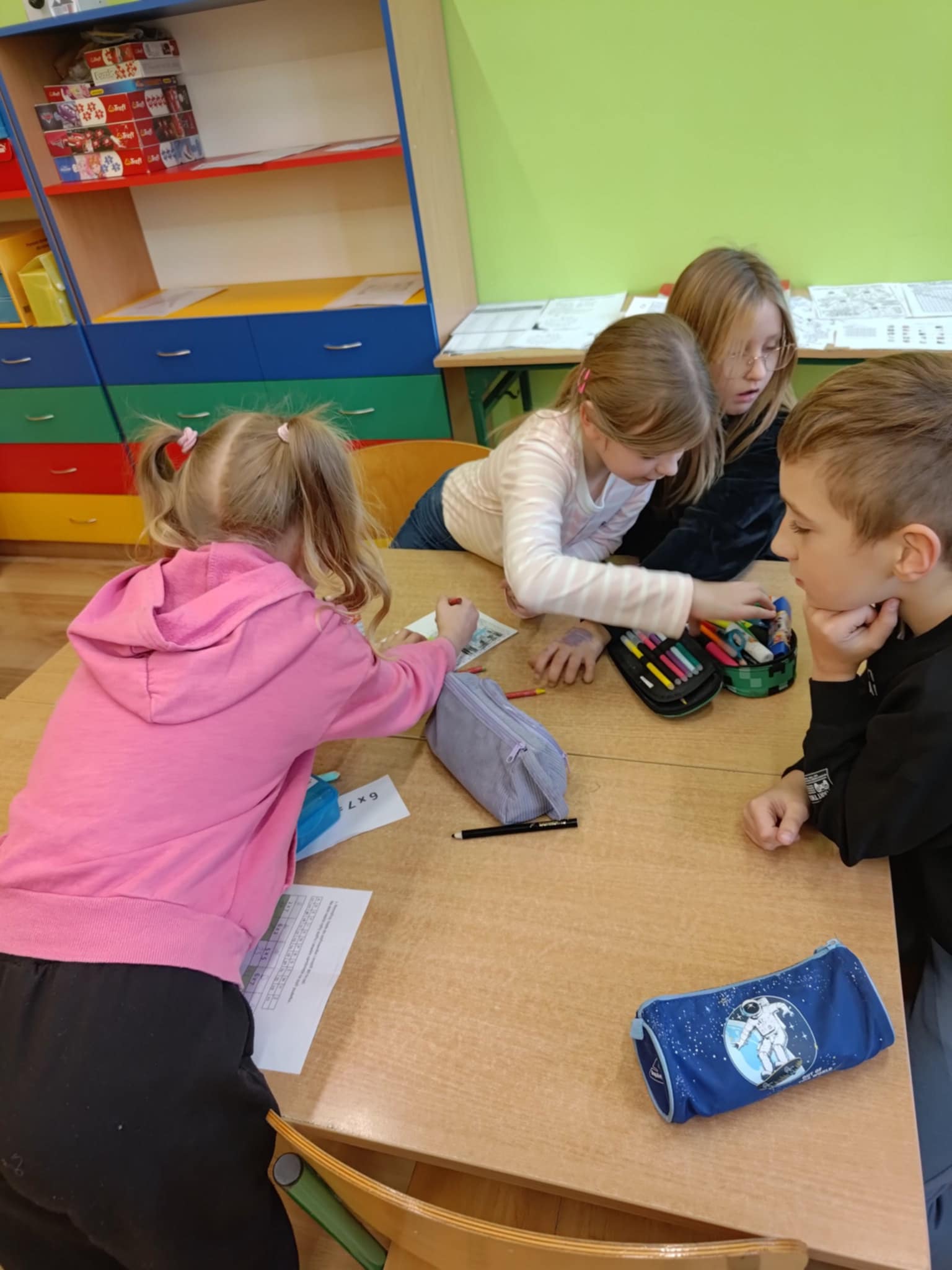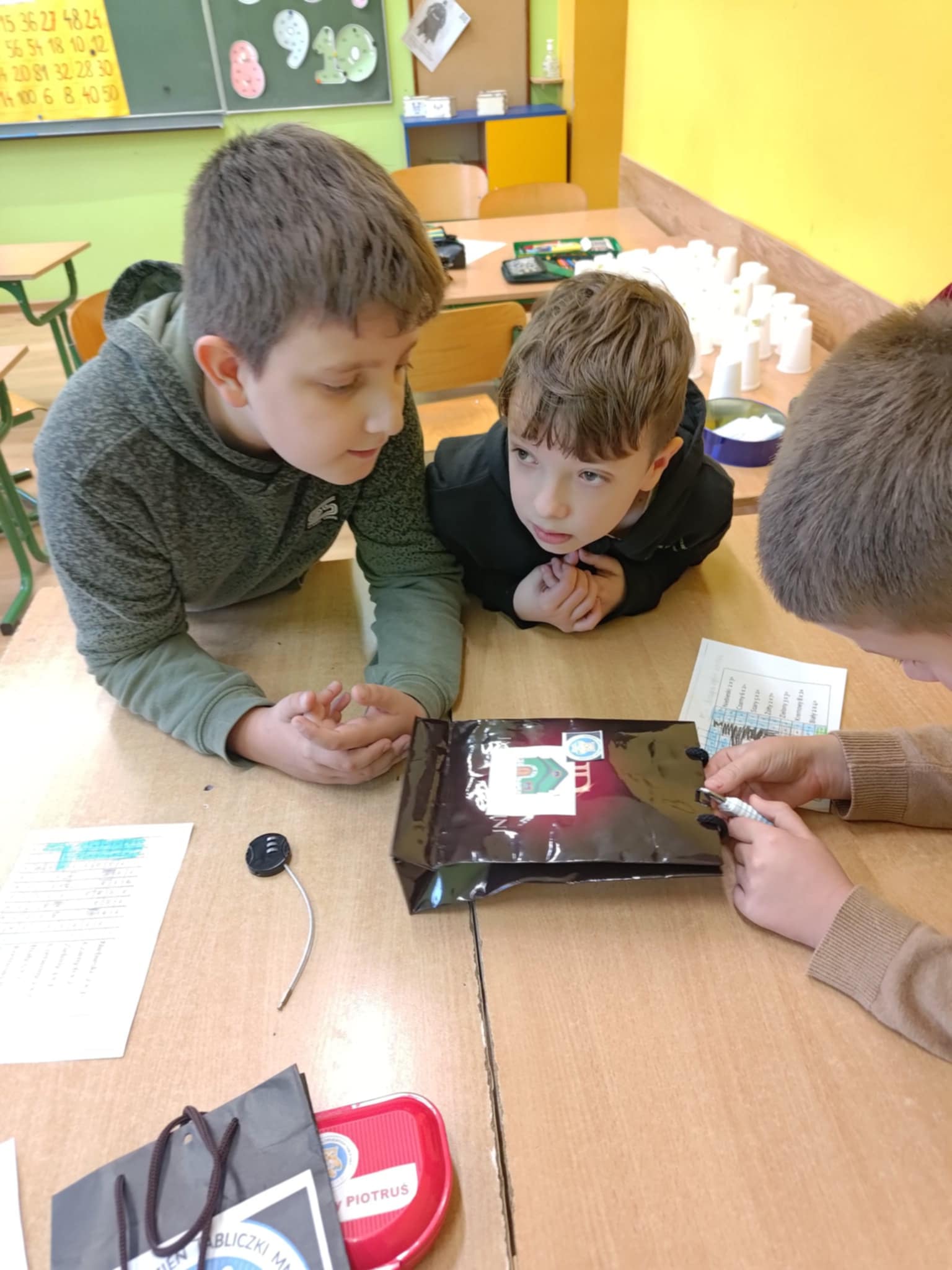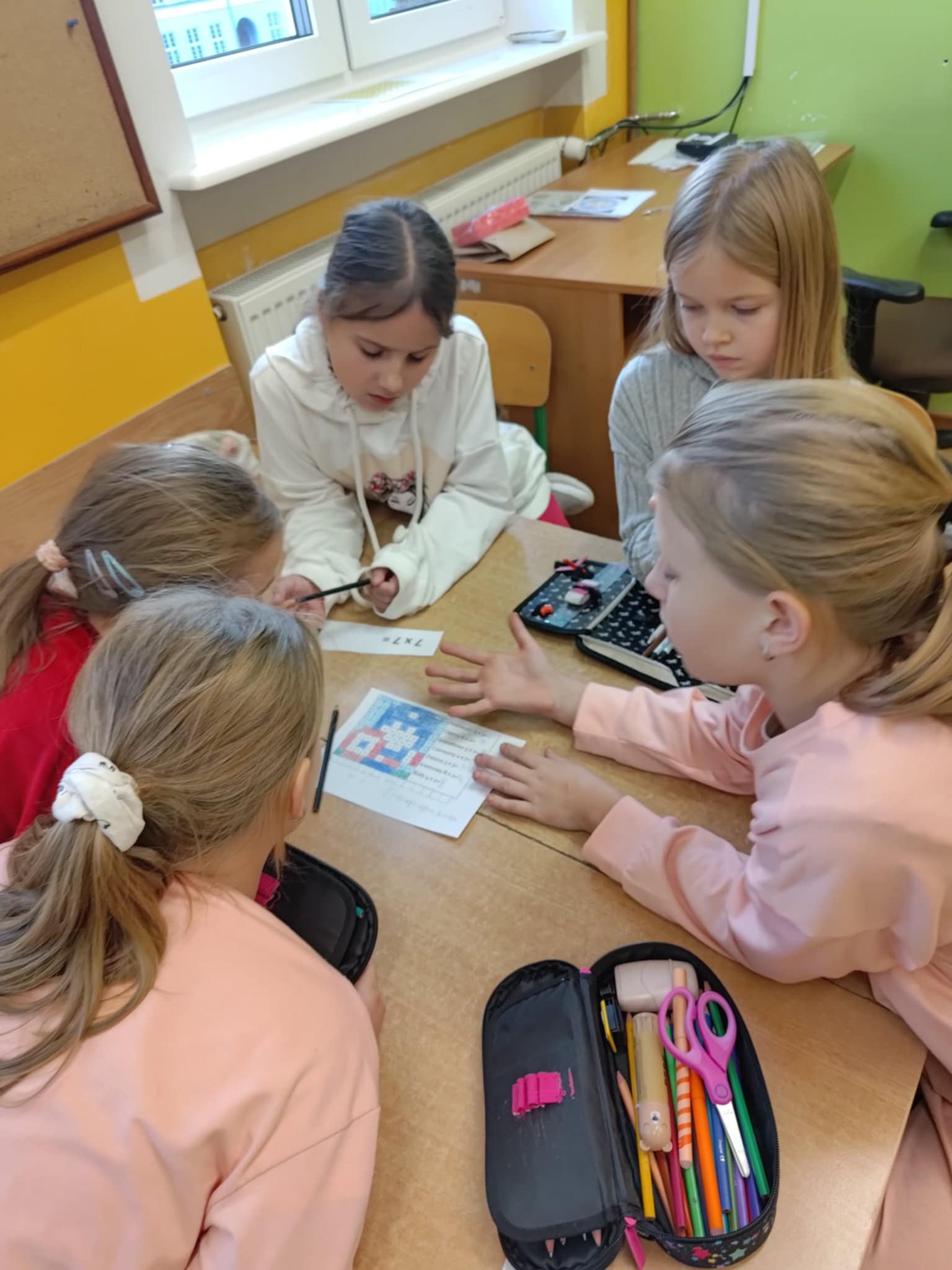 Na uczniów czekały między innymi: matematyczne domino, karty Piotruś, kółko i krzyżyk z działaniami oraz emocjonujący escape room, w którym każde poprawne rozwiązanie prowadziło do odkrycia kolejnych wskazówek. Nie zabrakło także „kubeczkowego zawrotu głowy”, kart pracy, matematycznego bingo, zabawy „wąż”," łap wynik", rozmowy liczb oraz dynamicznej sztafety mnożeniowej.