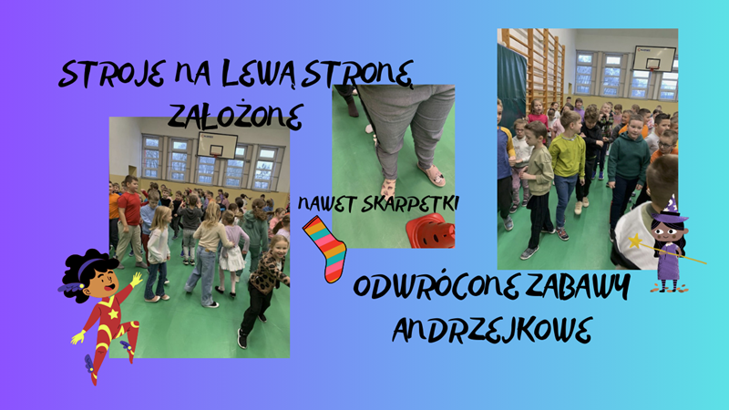 Andrzejki to tradycyjne, staropolskie święto wróżb obchodzone w noc z 29 na 30 listopada, czyli w wigilię dnia św. Andrzeja. Dziś jest to okazja do organizowania imprez i zabaw, podczas których wiele osób traktuje wróżby jako formę rozrywki. Tak też było w klasach drugich 28 listopada. Tego dnia dzieci przyszły ubrane na lewą stronę, kieszenie i wystające kolorowe metki były nietuzinkową ozdobą.