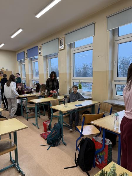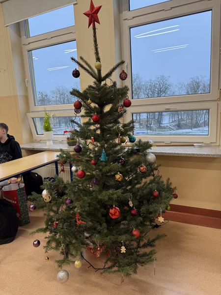 Dużym wydarzeniem było także wspólne ubieranie klasowej choinki. Uczniowie z zaangażowaniem rozwieszali własnoręcznie wykonane ozdoby, tworząc wyjątkowy, bożonarodzeniowy klimat. Dziękujemy rodzicom za okazaną pomoc i zaangażowanie w przygotowaniu świątecznej aranżacji naszej klasy. Cieszymy się, że mogliśmy wspólnie stworzyć tak magiczną atmosferę.