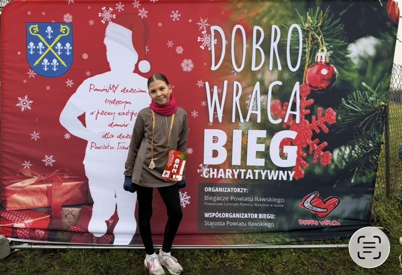 7 grudnia z kolei odbył się bieg ,,Dobro Wraca”, w którym wystartowała Tosia Szalkowska. Pokonała aż 6km,biegnąc dla dzieci z Domu Dziecka. To piękny gest i dowód na to, że naprawdę warto pomagać. Atmosfera wydarzenia była niezwykła-pełna ciepła, wzruszeń i bezinteresownej radości. Uśmiechy podopiecznych były najlepszą nagrodą dla wszystkich uczestników biegu. To prawdziwe święto dobra: dzieci dla dzieci, serca dla serc.