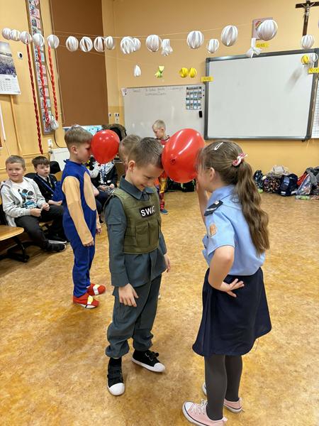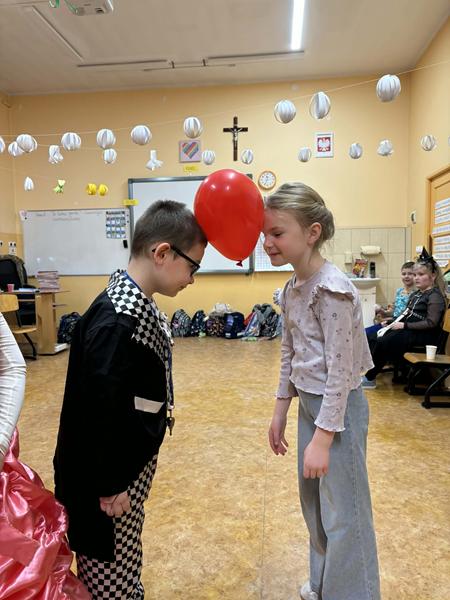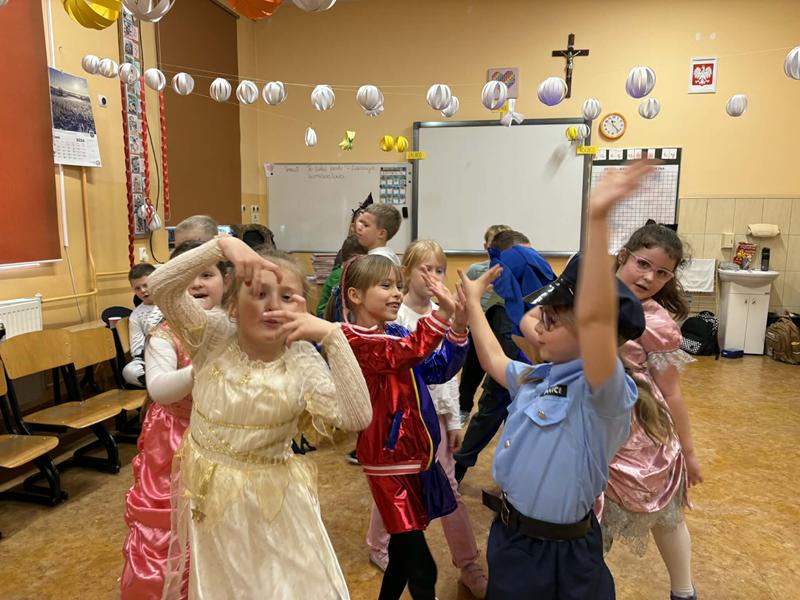 Dnia 16.01.2026r. w klasach pierwszych odbył się bal karnawałowy, który dostarczył uczniom wielu radosnych przeżyć. Sala balowa wypełniła się barwnymi i pomysłowymi strojami- wśród uczestników nie zabrakło księżniczek, superbohaterów, policjantów, postaci z ulubionych bajek, a także pirata czy banana.