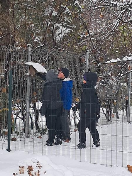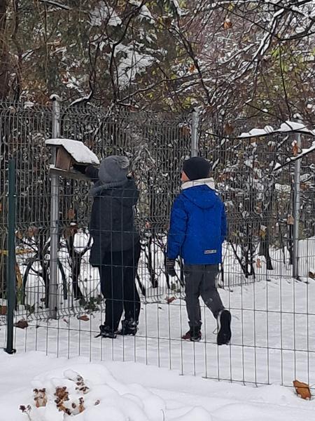 Zima to dla ptaków trudny czas, potrzebują energii, więc pomagamy im, dając ziarna słonecznika, kasze, niesoloną słoninę (bez chleba i resztek), wieszając to w bezpiecznym, czystym karmniku od jesieni do wczesnej wiosny, i robiąc to regularnie, by ocalić im życie. Pamiętając o tych zasadach drugoklasiści już jakiś czas temu ruszyli z akcją dokarmiania ptaków.