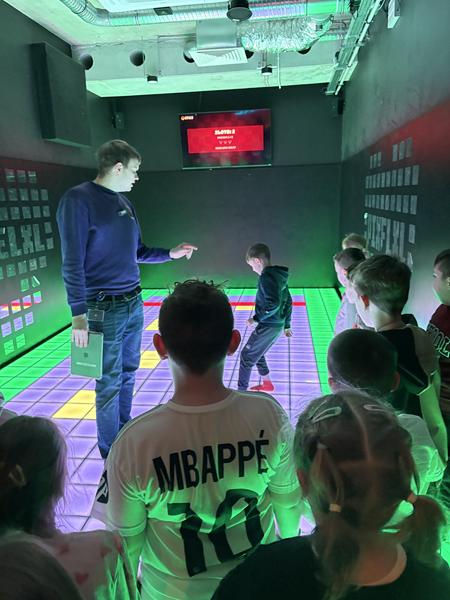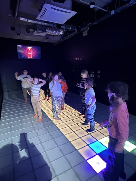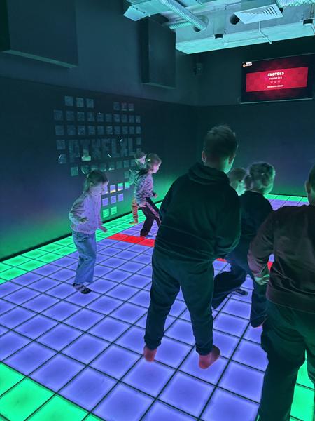 Dnia 09.02.2026 r. uczniowie klas 1b i 1d wzięli udział w wycieczce do centrum interaktywnej rozrywki Pixel XL w Gdańsku. Podczas wizyty dzieci uczestniczyły w aktywnych grach na interaktywnych matach reagujących na ruch i kolor. Zajęcia łączyły zabawę z ruchem, rozwijały refleks, koordynację oraz współpracę w grupie. Wyjazd dostarczył uczniom wielu radości i był świetną okazją do integracji oraz aktywnego spędzenia czasu poza szkołą.