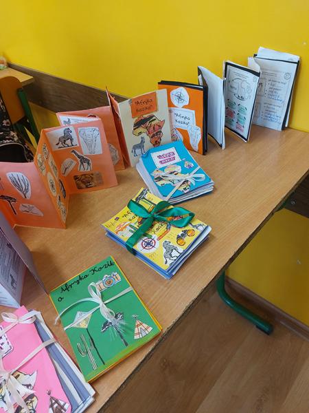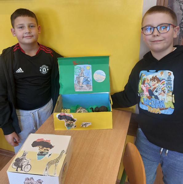 Klasa IIIa przy okazji omawiania lektury "Afryka Kazika" przeniosła się w afrykańską podróż. Uczniowie wykonali lekturowe pudełka, książeczki leporello i grupowe projekty. Poznali najważniejsze informacje i ciekawostki dotyczące Afryki. Współpracując w grupach wykonali plakaty, prezentujące fascynujące fakty i ciekawostki, dotyczące omawianego kontynentu.