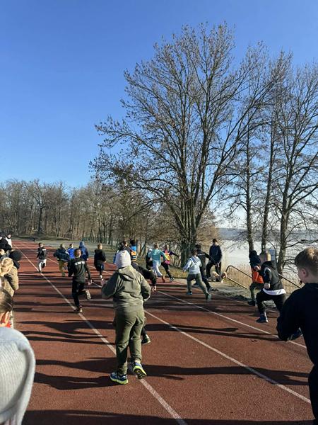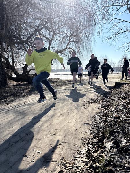 Najmłodsi uczniowie z klas 1–3 rywalizowali na bieżni na Orliku, gdzie mogli sprawdzić swoje siły w biegach i poczuć prawdziwą sportową atmosferę. Starsi uczniowie z klas 4–8 pokonywali trasę na alejce blisko jeziora,wykazując się wytrwałością, zaangażowaniem i sportowym duchem walki.