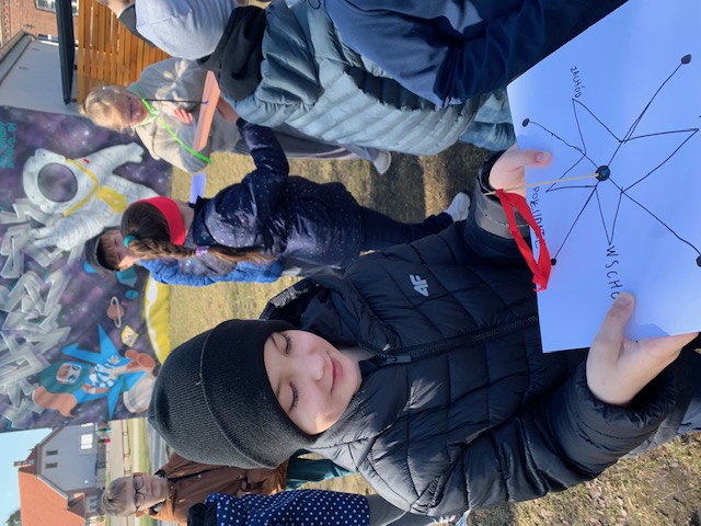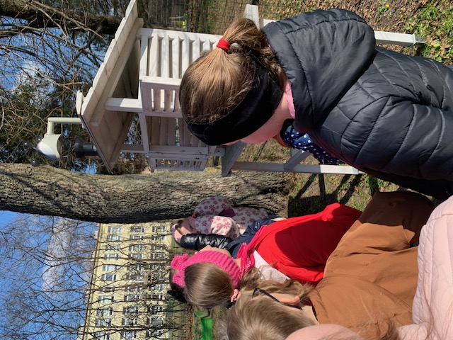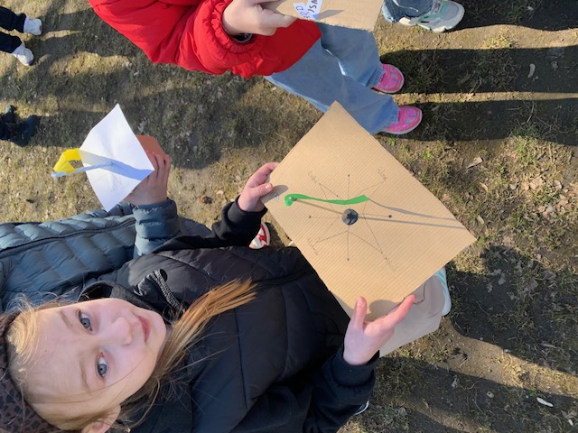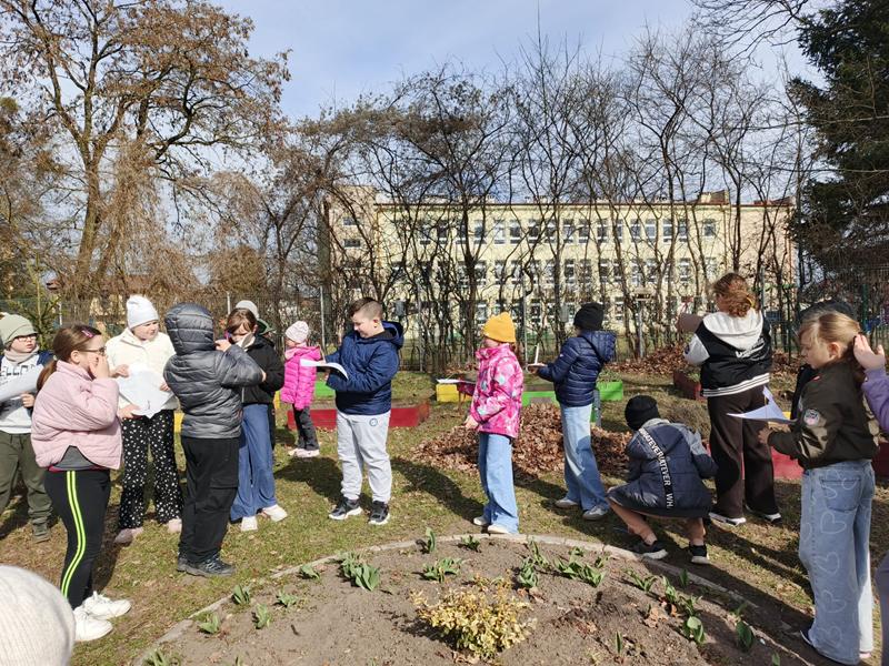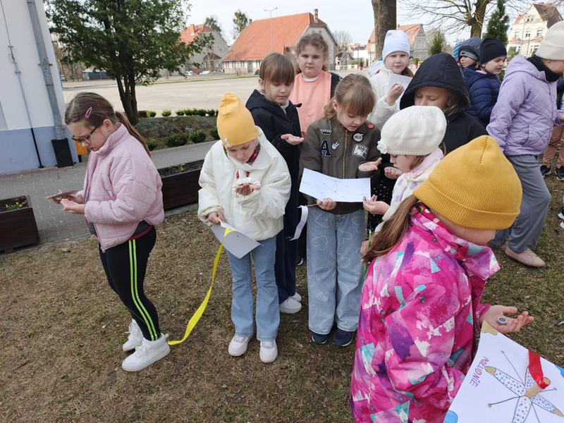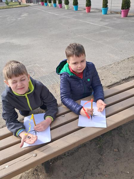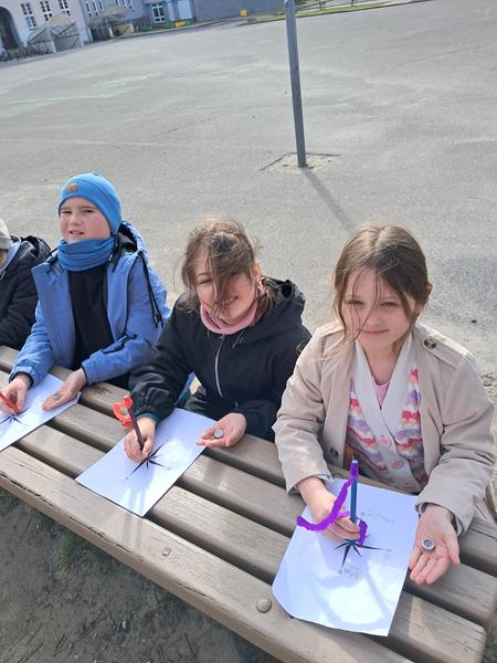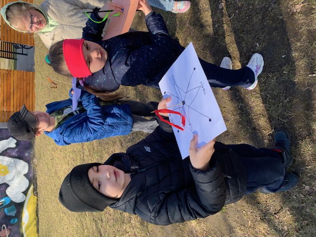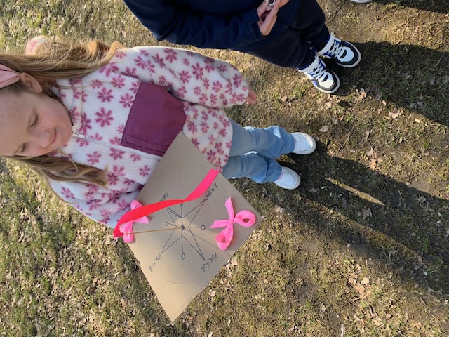Dzieci uczyły się również korzystania z kompasu – poznawały jego budowę i zasady działania, a następnie wykorzystywały go do wyznaczania kierunku północnego. Ćwiczenia te pozwoliły im lepiej zrozumieć orientację w terenie oraz znaczenie kierunków świata w codziennym życiu. Zajęcia odbyły się w ogrodzie, gdzie uczniowie mieli możliwość obserwowania stacji badawczej wyposażonej w podstawowe przyrządy meteorologiczne, takie jak termometr, barometr oraz wiatromierz. Nauczyli się, do czego służą te urządzenia oraz jakie informacje można dzięki nim uzyskać. Dzięki tym działaniom uczniowie poznali na czym polega praca meteorologa – dowiedzieli się, jak prowadzi się obserwacje pogodowe, jakie pomiary są wykonywane oraz dlaczego są one ważne. Zajęcia miały charakter praktyczny i angażujący, co sprzyjało rozwijaniu ciekawości poznawczej oraz zainteresowania światem przyrody.