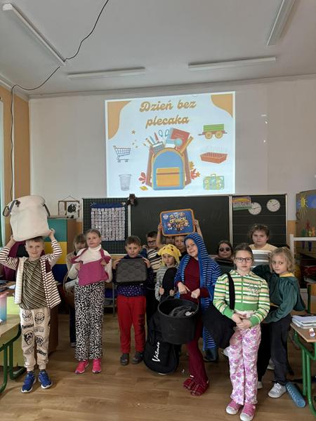 Nasi uczniowie spisali się znakomicie! Na szkolnych korytarzach pojawiły się bardzo oryginalne „zamienniki plecaków”, a cała akcja dostarczyła mnóstwo śmiechu i pozytywnej energii. Było naprawdę kreatywnie, radośnie i… momentami bardzo zaskakująco.