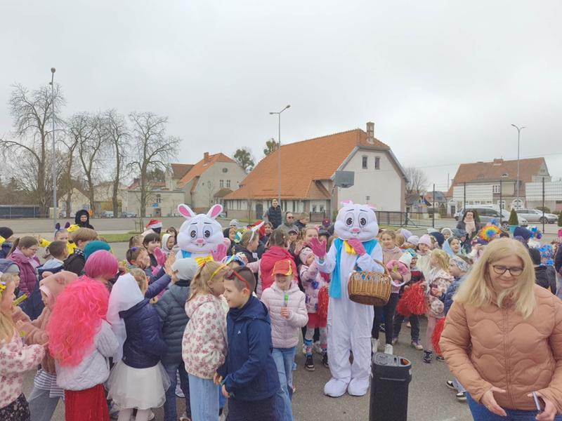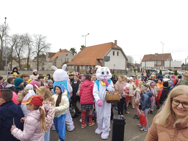 Tego dnia spotkała nas jeszcze jedna miła niespodzianka – z okazji zbliżających się Świąt szkołę odwiedziły dwa wesołe zajączki, które „kicając” po korytarzach rozdawały uczniom czekoladowe lizaki. Jak widać, wielkanocna magia dotarła do nas trochę wcześniej.